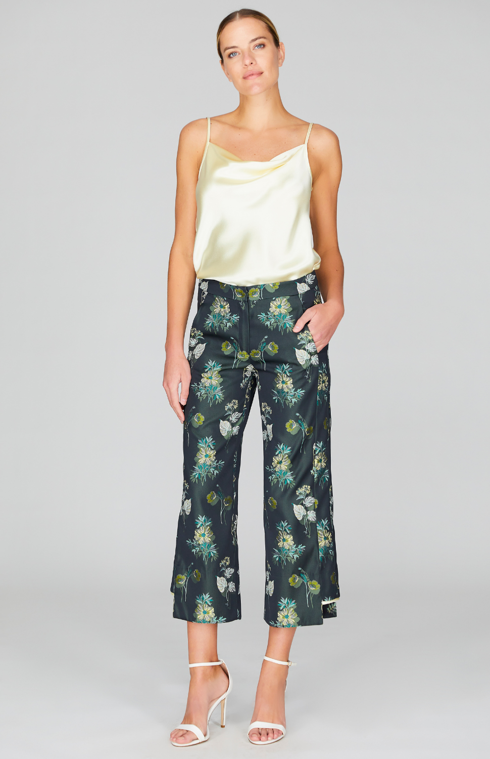 Watercolor Botanic Straight Pant w/Step Hem