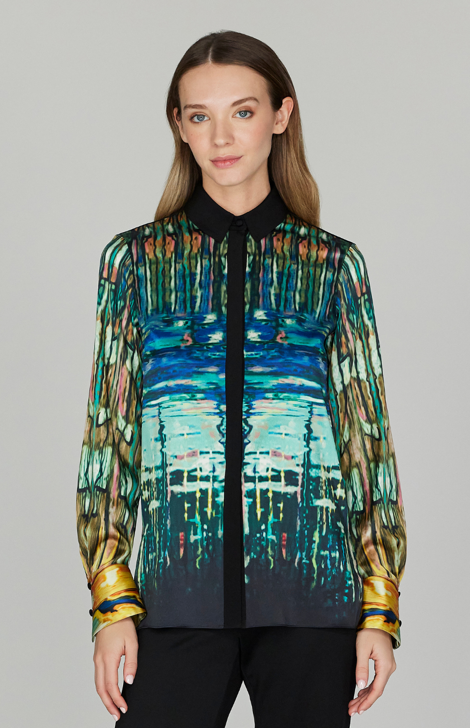 Water Reflection Collared Blouse w/ Relaxed Sleeve