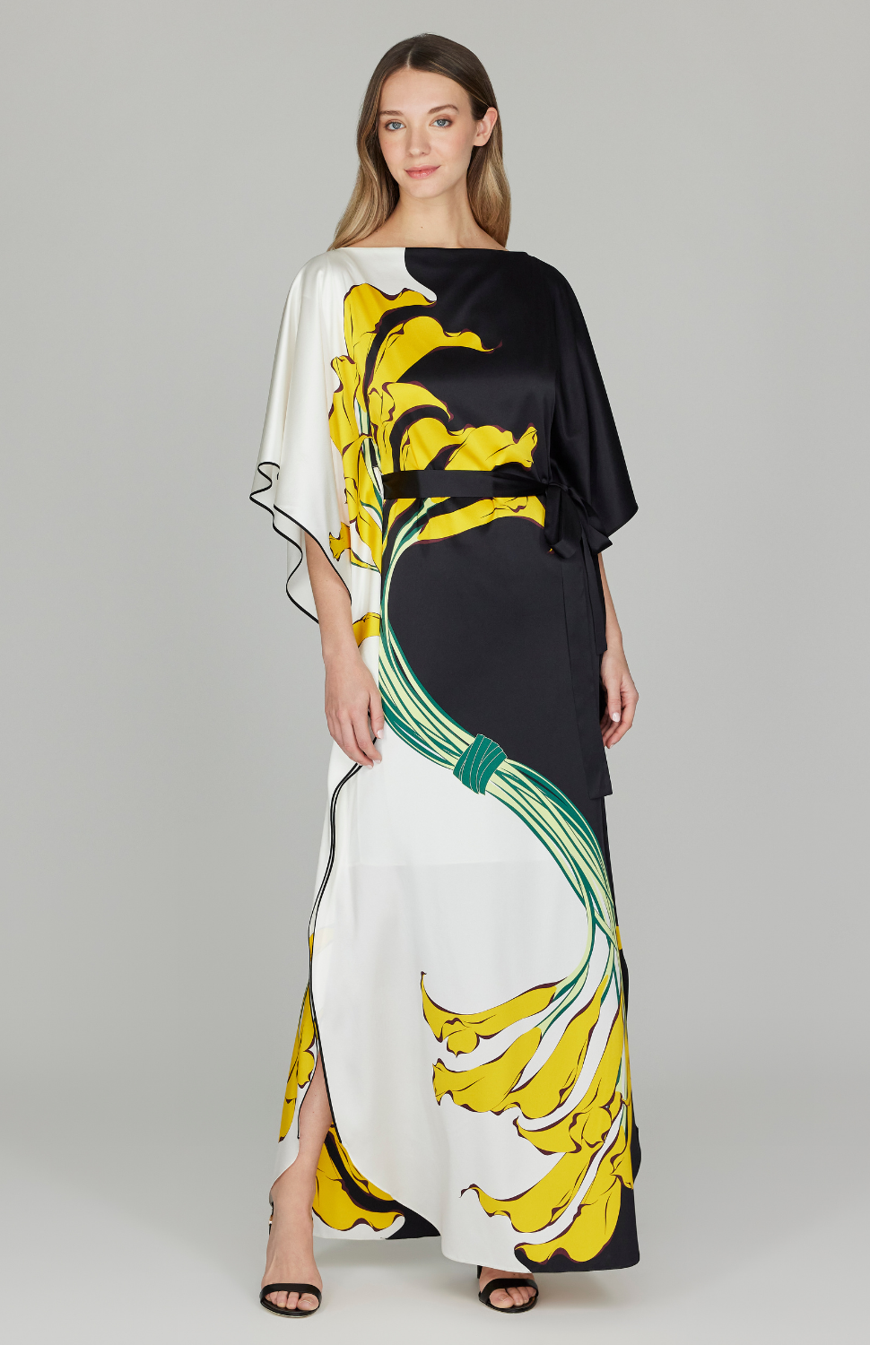 Flower Twist Sleeveless Trapeze Gown w/ Bias