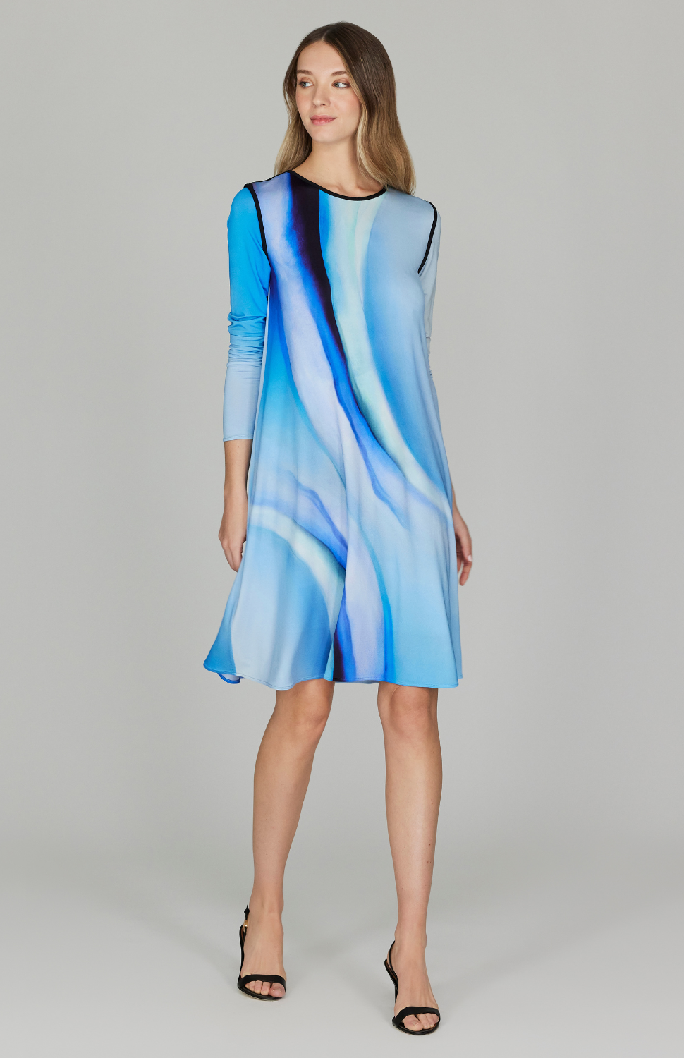 Brush Stroke Print Short Cap Sleeve Trapeze Dress