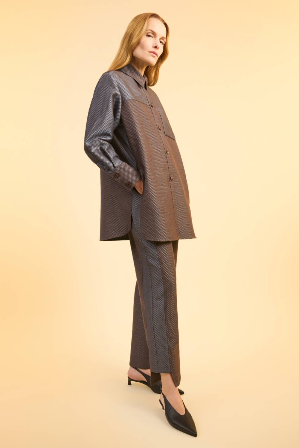 Double Face Check Jacquard Color Block Boyfriend Shirt