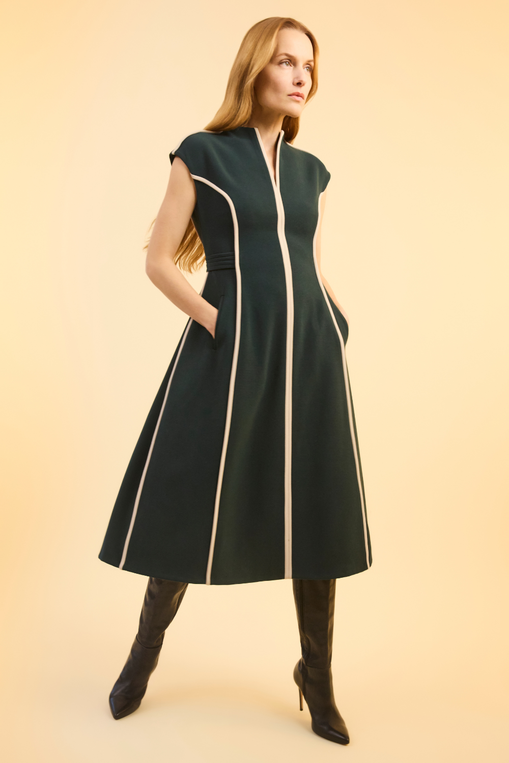 Double Face Cap Sleeve Fit & Flare Dress w/Contrast Bias
