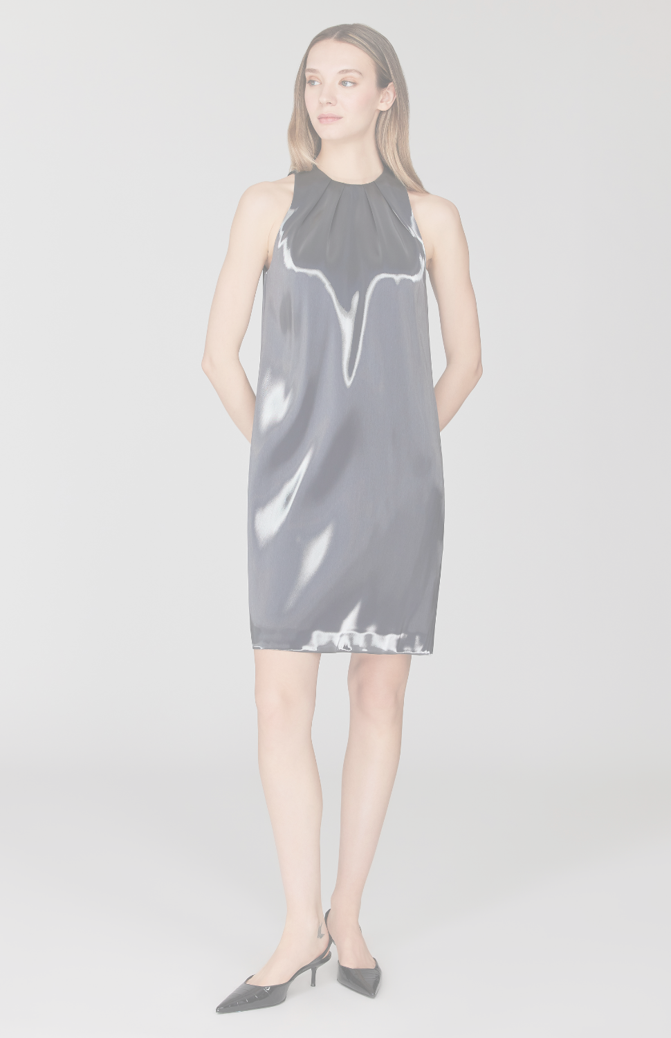 Liquid Organza Shift Dress w/ Pleat Neck
